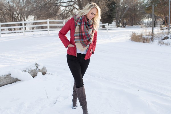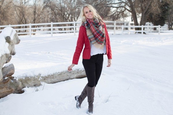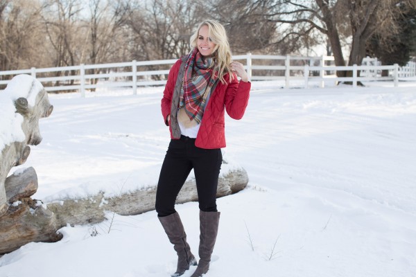 Jeans: Lucky Brand (Similar) / Top: Lucky Brand (Similar) / Scarf: Amazon / Jacket: Eddie Bauer (Similar) / Boots: Born