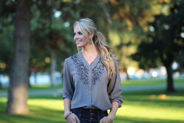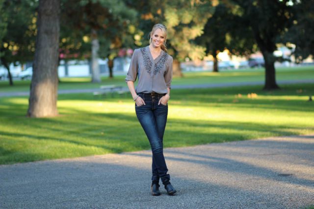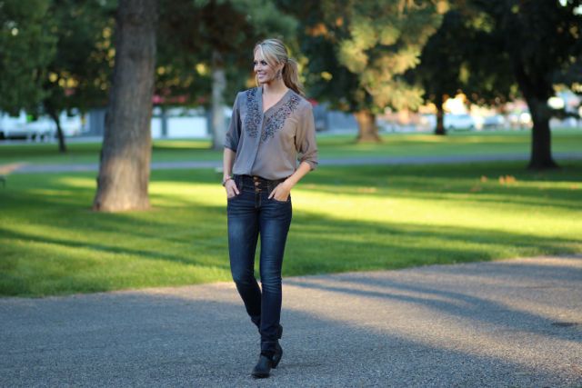 Outfit Details: Blouse and Earrings: Chicos / Jeans: Alloy / Boots: Kenneth Cole via Nordstrom Rack